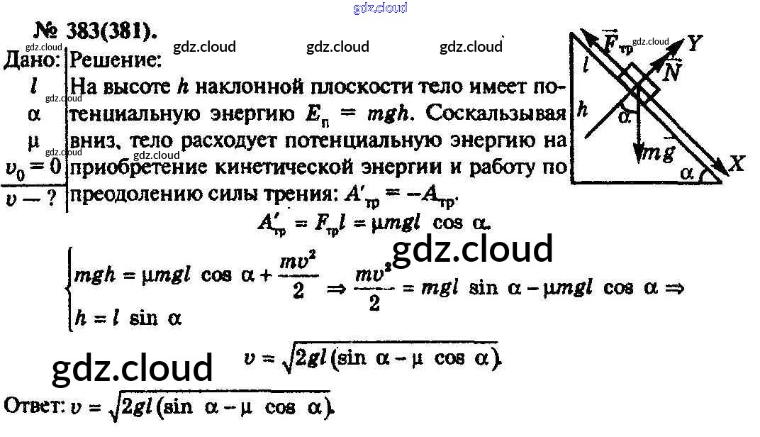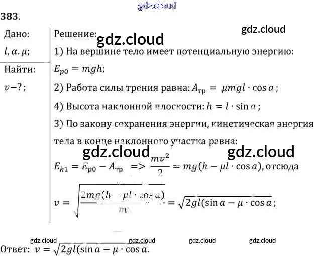 Ответ на задание 383 Задачник Физика за 10, 11 (десятый, одиннадцатый) класс Рымкевич УМК 2013