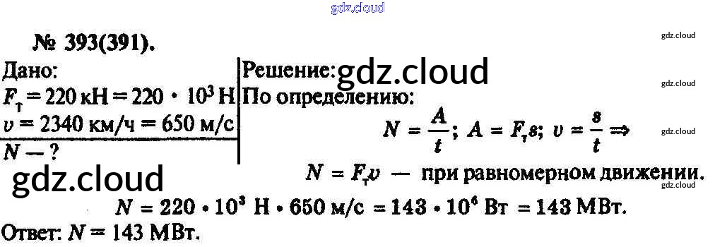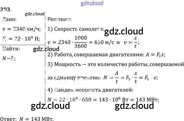 Ответ на задание 393 Задачник Физика за 10, 11 (десятый, одиннадцатый) класс Рымкевич УМК 2013