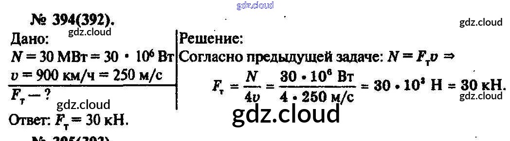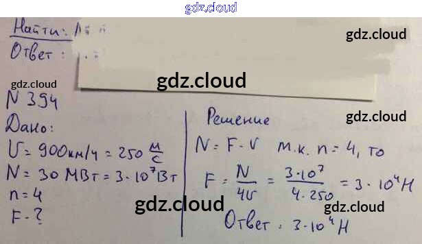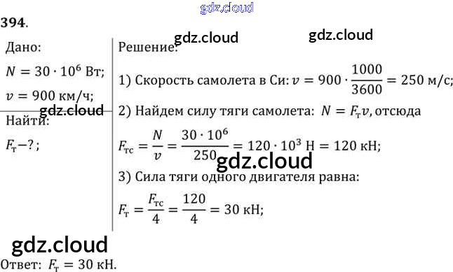 Ответ на задание 394 Задачник Физика за 10, 11 (десятый, одиннадцатый) класс Рымкевич УМК 2013