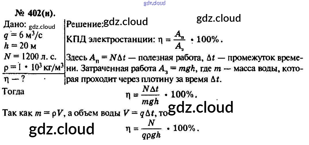 Ответ на задание 402 Задачник Физика за 10, 11 (десятый, одиннадцатый) класс Рымкевич УМК 2013 ФГОС онлайн и без номера телефона.