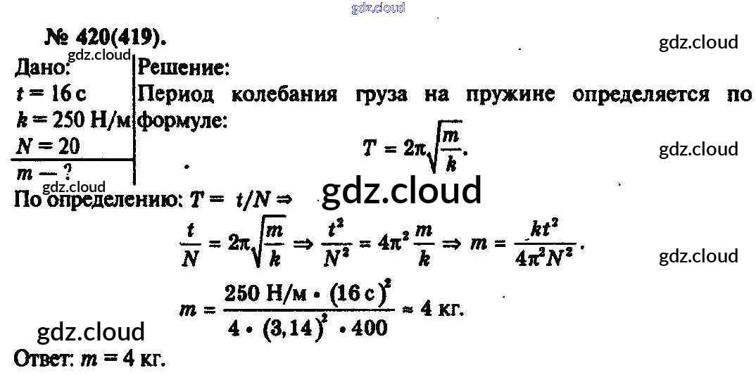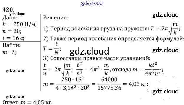 Ответ на задание 420 Задачник Физика за 10, 11 (десятый, одиннадцатый) класс Рымкевич УМК 2013 ФГОС онлайн и без номера телефона.