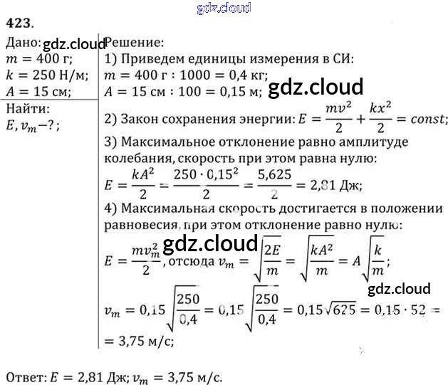 Ответ на задание 423 Задачник Физика за 10, 11 (десятый, одиннадцатый) класс Рымкевич УМК 2013 ФГОС онлайн и без номера телефона.