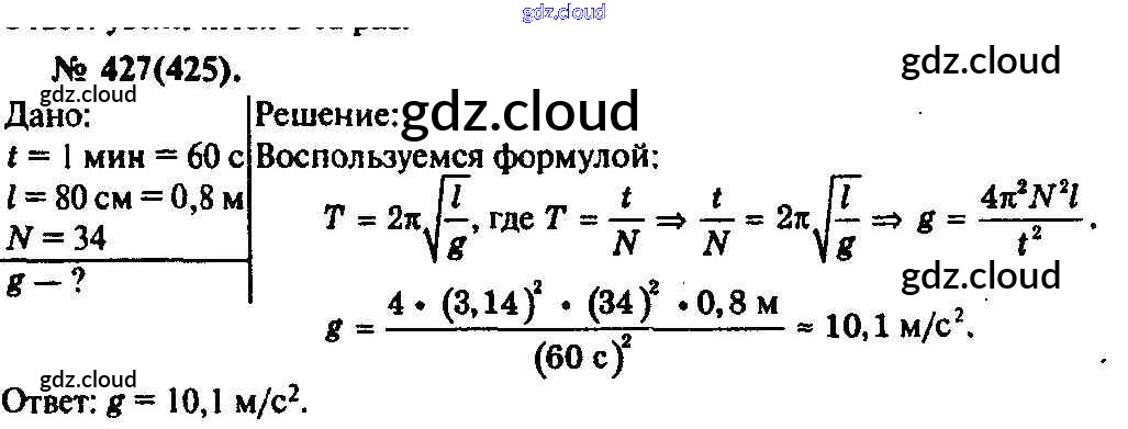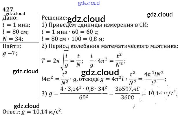 Ответ на задание 427 Задачник Физика за 10, 11 (десятый, одиннадцатый) класс Рымкевич УМК 2013 ФГОС онлайн и без номера телефона.