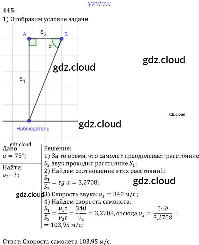 Ответ на задание 445 Задачник Физика за 10, 11 (десятый, одиннадцатый) класс Рымкевич УМК 2013 ФГОС онлайн и без номера телефона.
