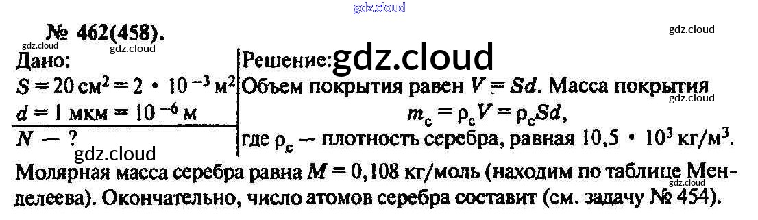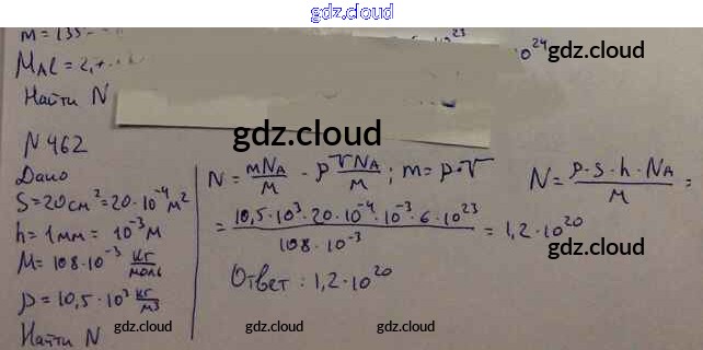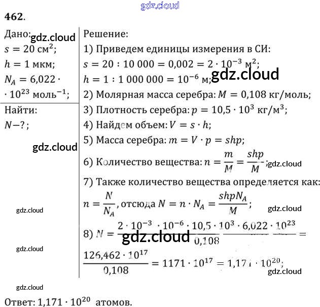 Ответ на задание 462 Задачник Физика за 10, 11 (десятый, одиннадцатый) класс Рымкевич УМК 2013