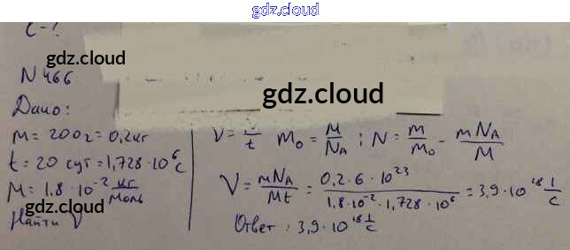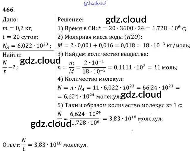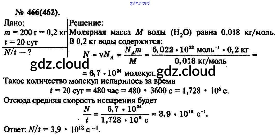 Ответ на задание 466 Задачник Физика за 10, 11 (десятый, одиннадцатый) класс Рымкевич УМК 2013