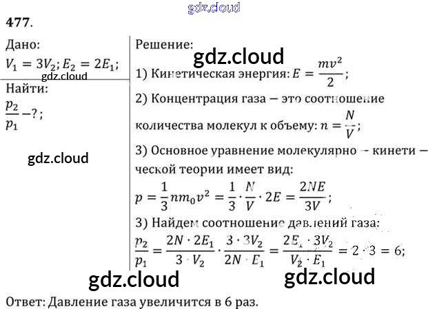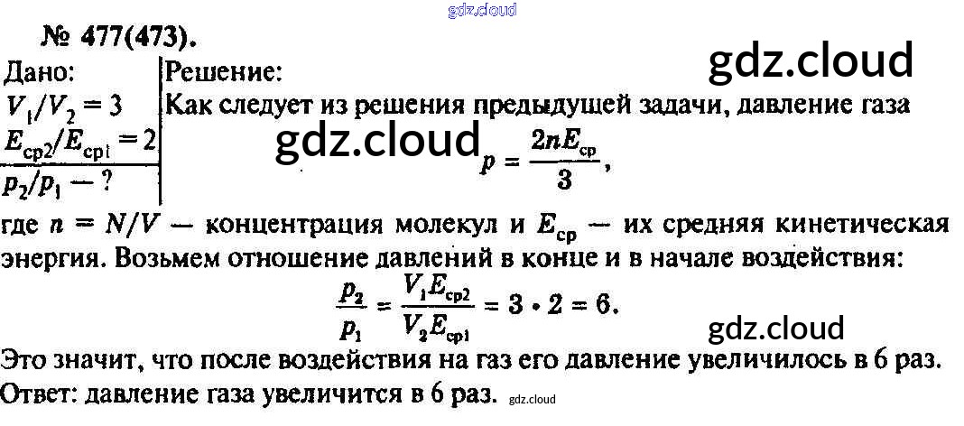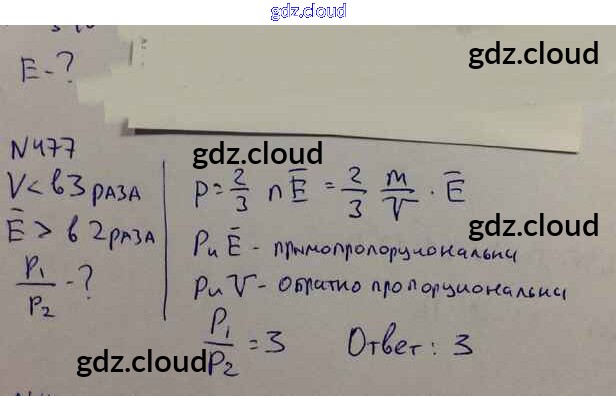 Ответ на задание 477 Задачник Физика за 10, 11 (десятый, одиннадцатый) класс Рымкевич УМК 2013