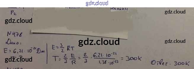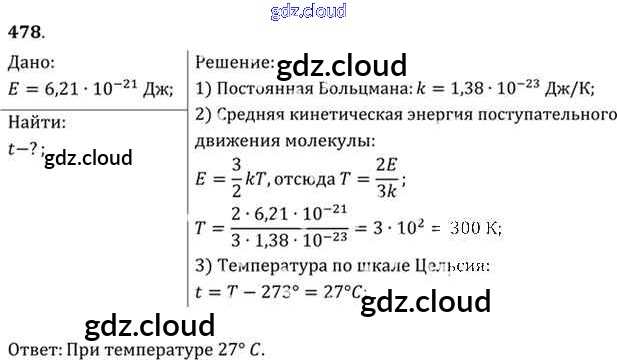 Ответ на задание 478 Задачник Физика за 10, 11 (десятый, одиннадцатый) класс Рымкевич УМК 2013