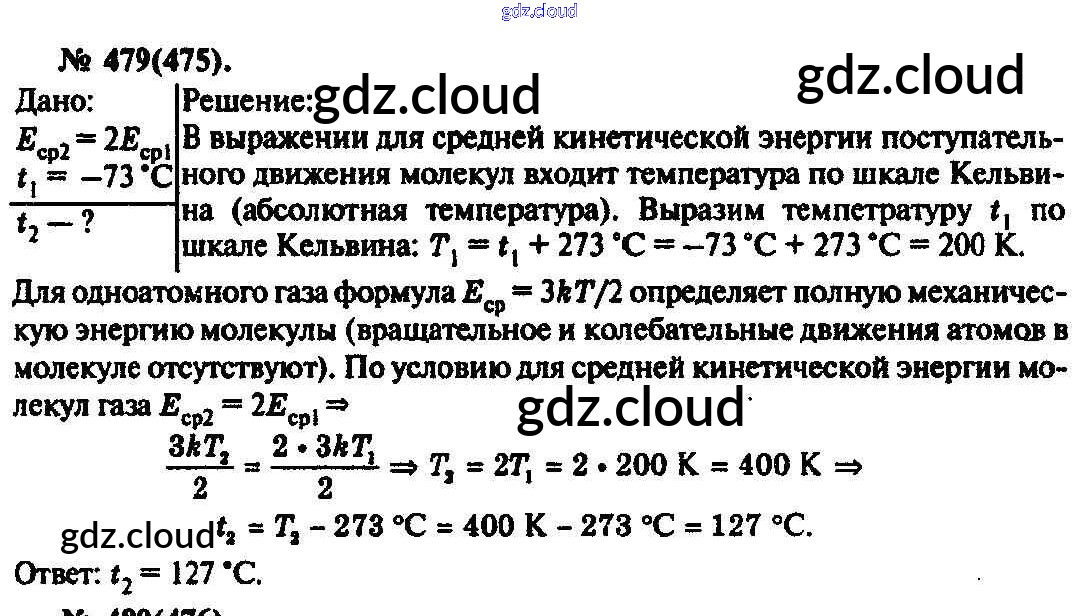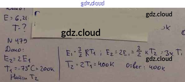 Ответ на задание 479 Задачник Физика за 10, 11 (десятый, одиннадцатый) класс Рымкевич УМК 2013