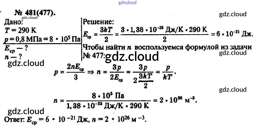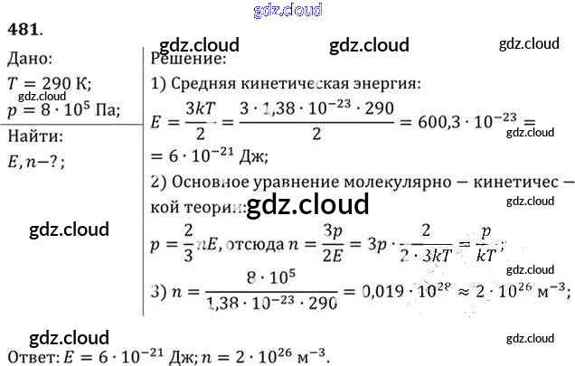 Ответ на задание 481 Задачник Физика за 10, 11 (десятый, одиннадцатый) класс Рымкевич УМК 2013