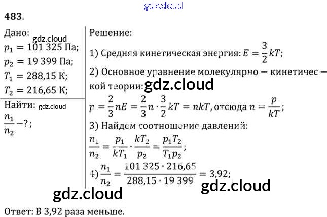 Ответ на задание 483 Задачник Физика за 10, 11 (десятый, одиннадцатый) класс Рымкевич УМК 2013