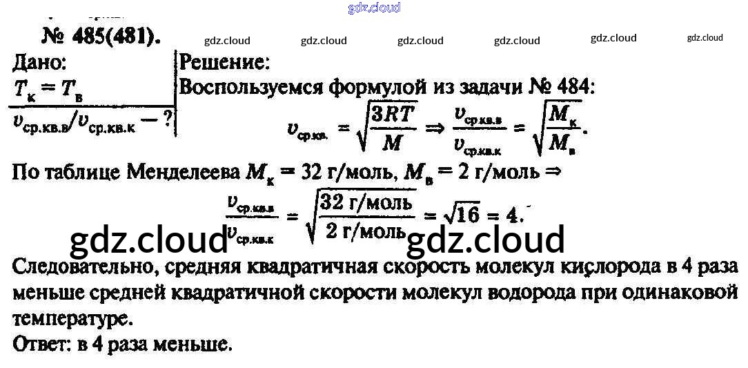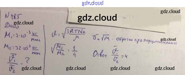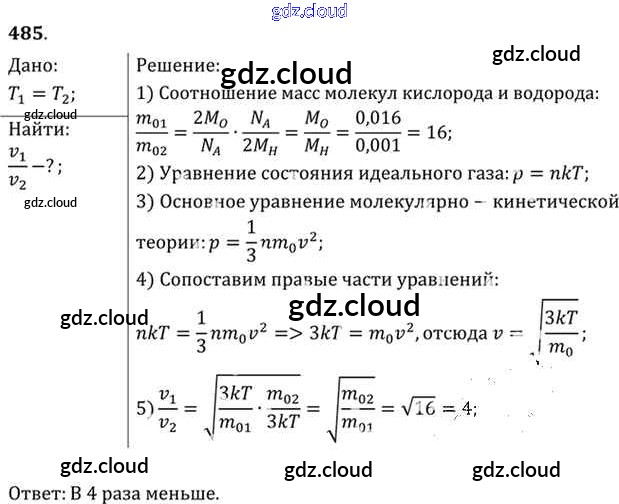 Ответ на задание 485 Задачник Физика за 10, 11 (десятый, одиннадцатый) класс Рымкевич УМК 2013