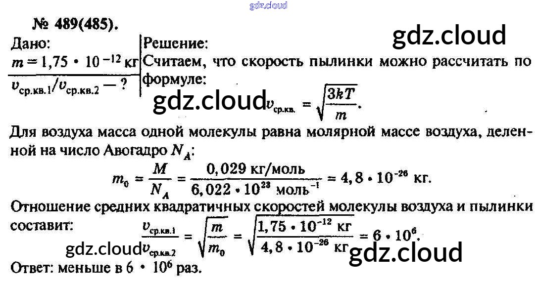 Ответ на задание 489 Задачник Физика за 10, 11 (десятый, одиннадцатый) класс Рымкевич УМК 2013