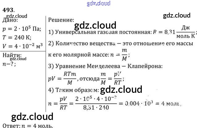 Ответ на задание 493 Задачник Физика за 10, 11 (десятый, одиннадцатый) класс Рымкевич УМК 2013