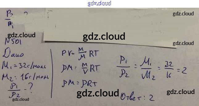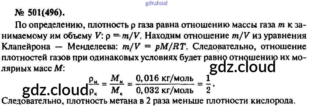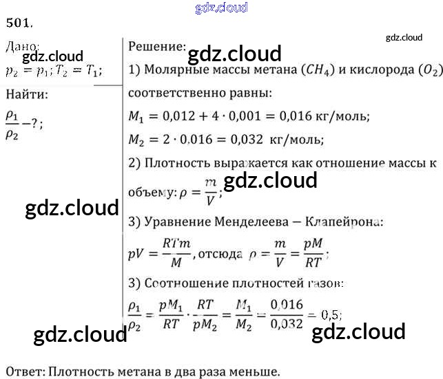 Ответ на задание 501 Задачник Физика за 10, 11 (десятый, одиннадцатый) класс Рымкевич УМК 2013