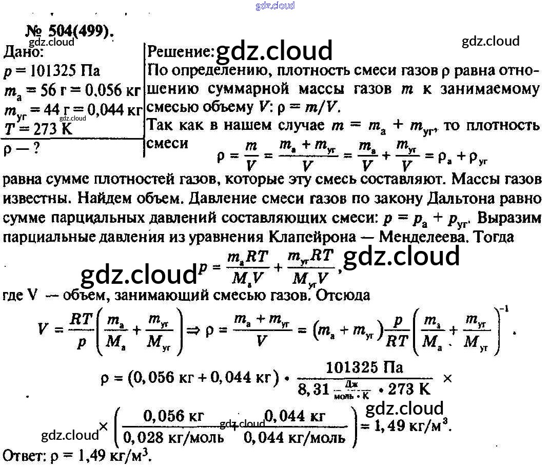 Ответ на задание 504 Задачник Физика за 10, 11 (десятый, одиннадцатый) класс Рымкевич УМК 2013