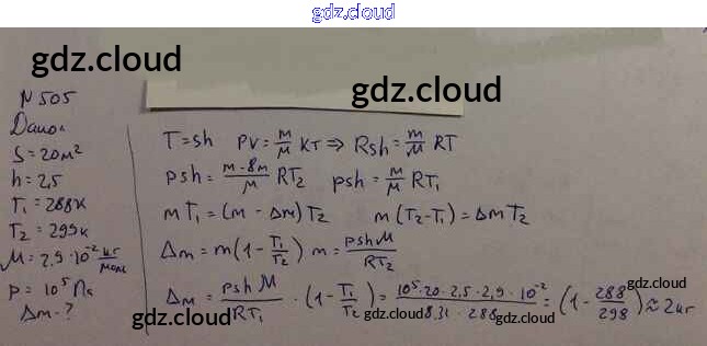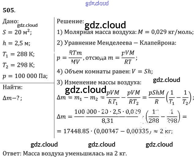 Ответ на задание 505 Задачник Физика за 10, 11 (десятый, одиннадцатый) класс Рымкевич УМК 2013
