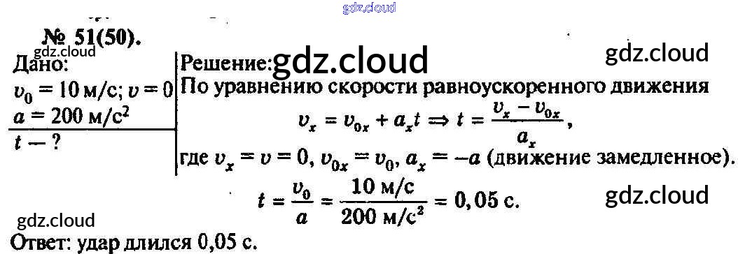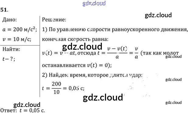 Ответ на задание 51 Задачник Физика за 10, 11 (десятый, одиннадцатый) класс Рымкевич УМК 2013