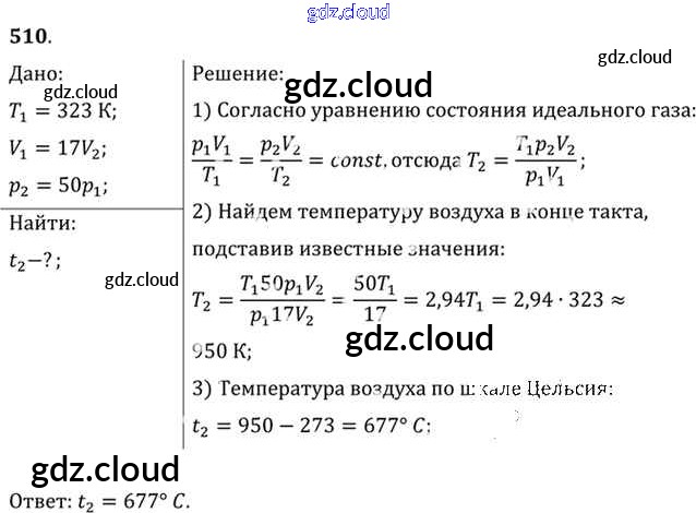 Ответ на задание 510 Задачник Физика за 10, 11 (десятый, одиннадцатый) класс Рымкевич УМК 2013