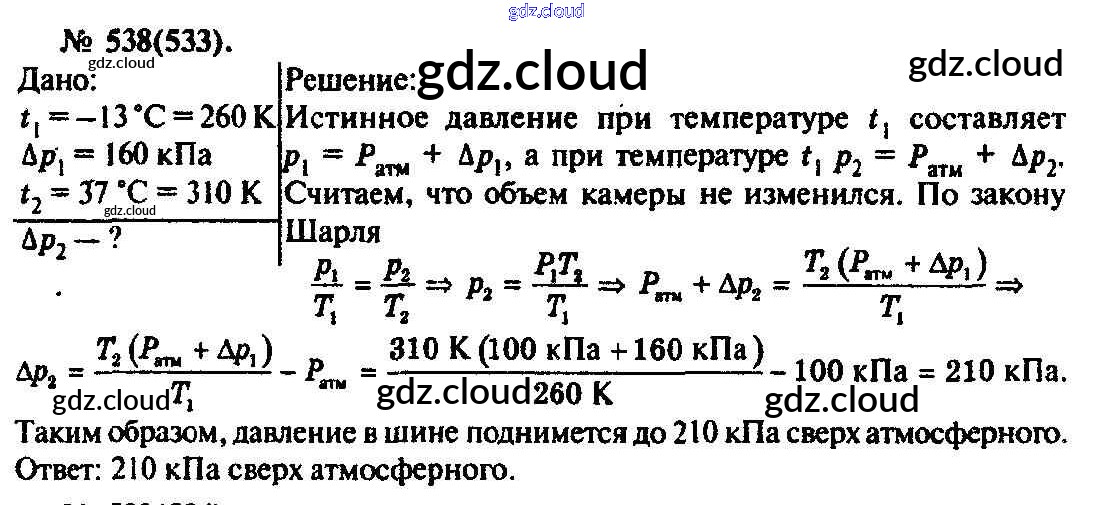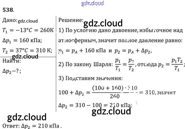 Ответ на задание 538 Задачник Физика за 10, 11 (десятый, одиннадцатый) класс Рымкевич УМК 2013
