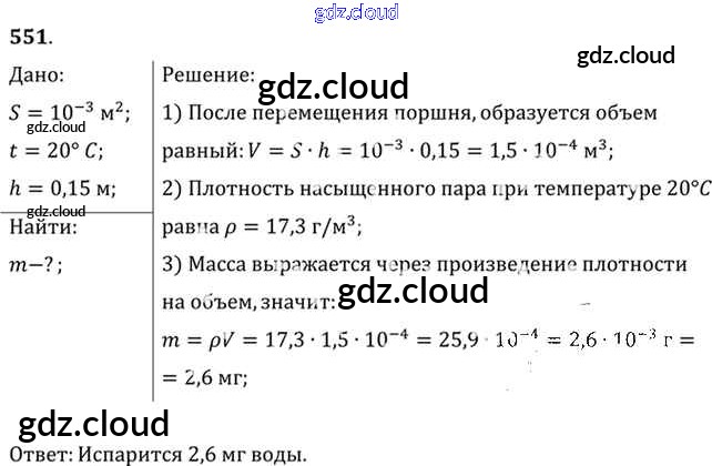 Ответ на задание 551 Задачник Физика за 10, 11 (десятый, одиннадцатый) класс Рымкевич УМК 2013