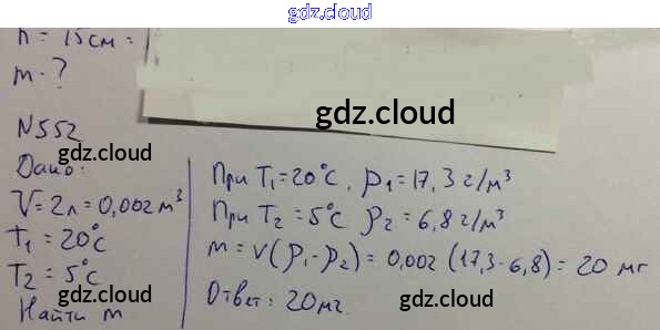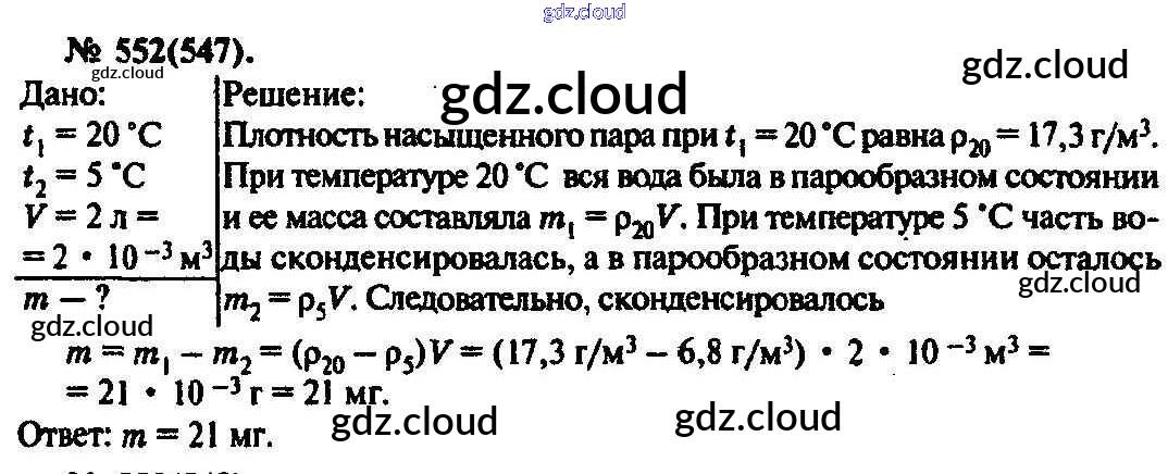 Ответ на задание 552 Задачник Физика за 10, 11 (десятый, одиннадцатый) класс Рымкевич УМК 2013