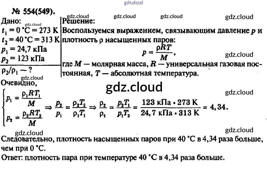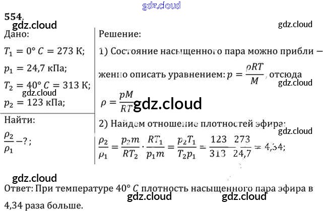 Ответ на задание 554 Задачник Физика за 10, 11 (десятый, одиннадцатый) класс Рымкевич УМК 2013