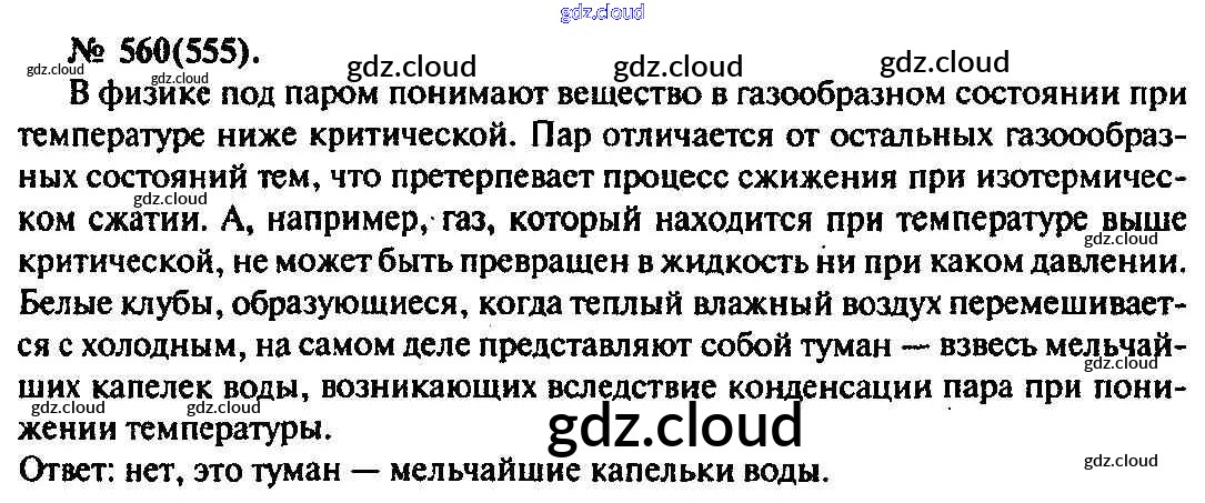 Ответ на задание 560 Задачник Физика за 10, 11 (десятый, одиннадцатый) класс Рымкевич УМК 2013