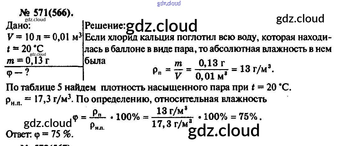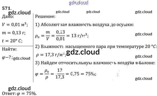 Ответ на задание 571 Задачник Физика за 10, 11 (десятый, одиннадцатый) класс Рымкевич УМК 2013