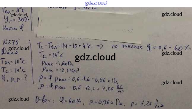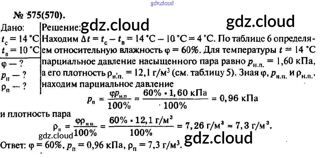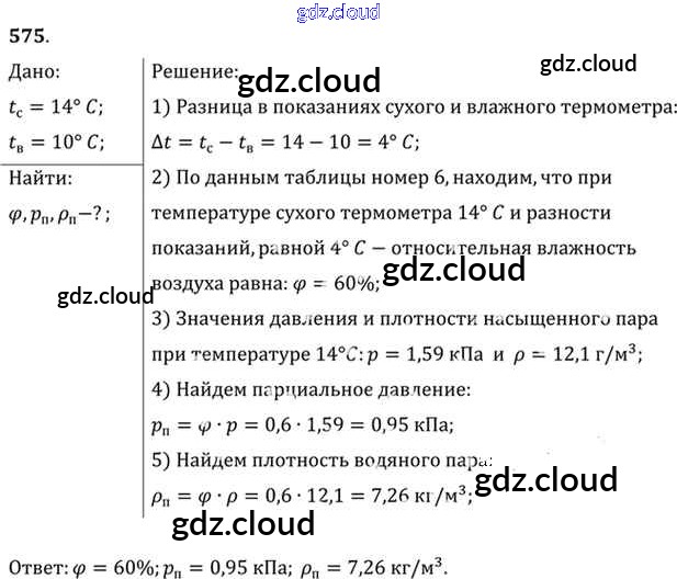 Ответ на задание 575 Задачник Физика за 10, 11 (десятый, одиннадцатый) класс Рымкевич УМК 2013