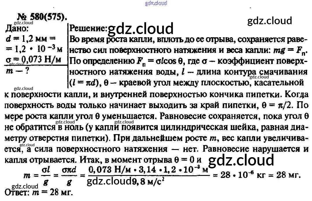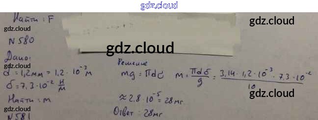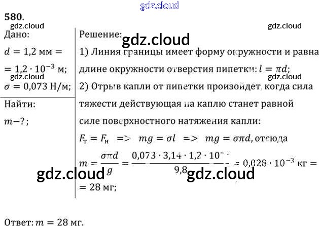 Ответ на задание 580 Задачник Физика за 10, 11 (десятый, одиннадцатый) класс Рымкевич УМК 2013