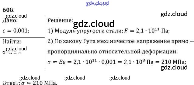 Ответ на задание 608 Задачник Физика за 10, 11 (десятый, одиннадцатый) класс Рымкевич УМК 2013