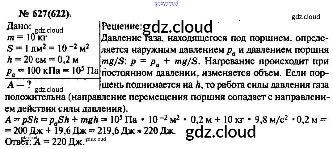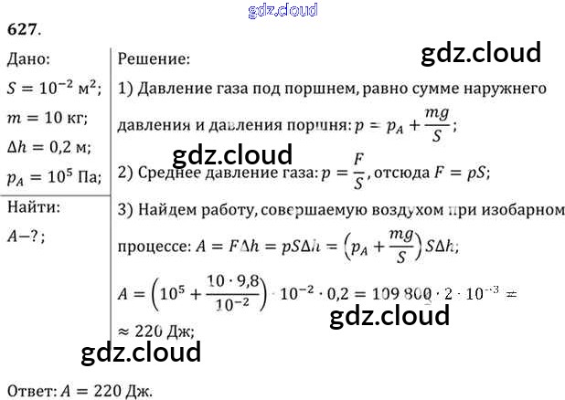 Ответ на задание 627 Задачник Физика за 10, 11 (десятый, одиннадцатый) класс Рымкевич УМК 2013