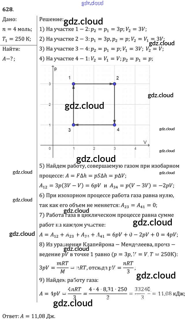 Ответ на задание 628 Задачник Физика за 10, 11 (десятый, одиннадцатый) класс Рымкевич УМК 2013