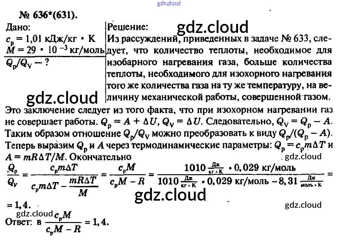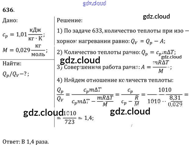 Ответ на задание 636 Задачник Физика за 10, 11 (десятый, одиннадцатый) класс Рымкевич УМК 2013