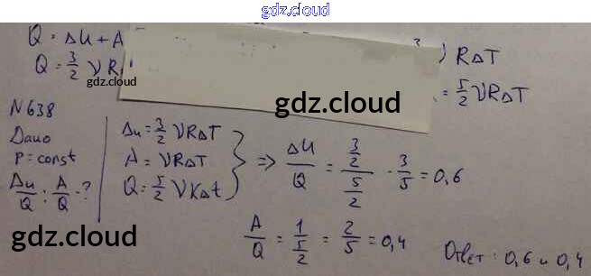 Ответ на задание 638 Задачник Физика за 10, 11 (десятый, одиннадцатый) класс Рымкевич УМК 2013