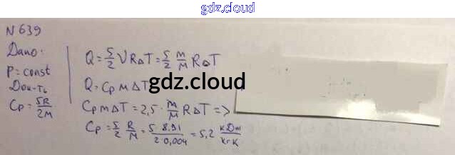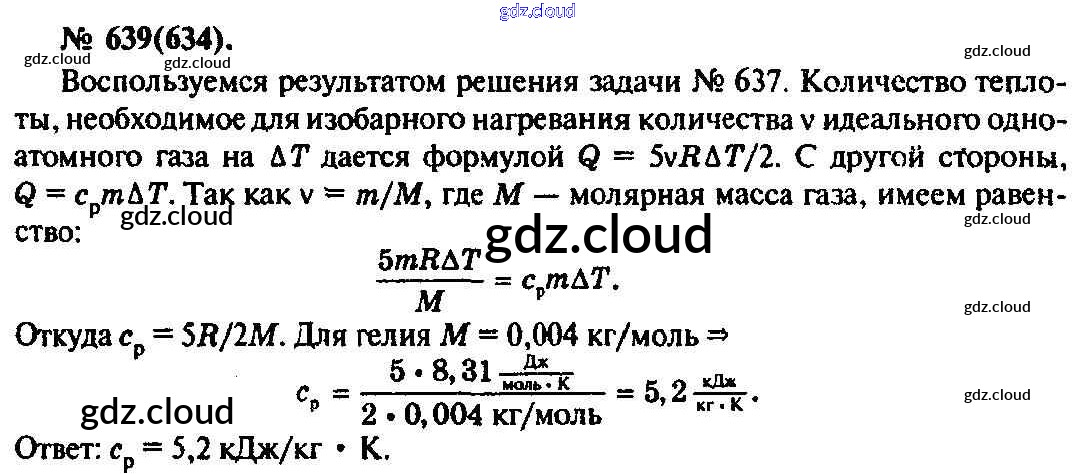 Ответ на задание 639 Задачник Физика за 10, 11 (десятый, одиннадцатый) класс Рымкевич УМК 2013