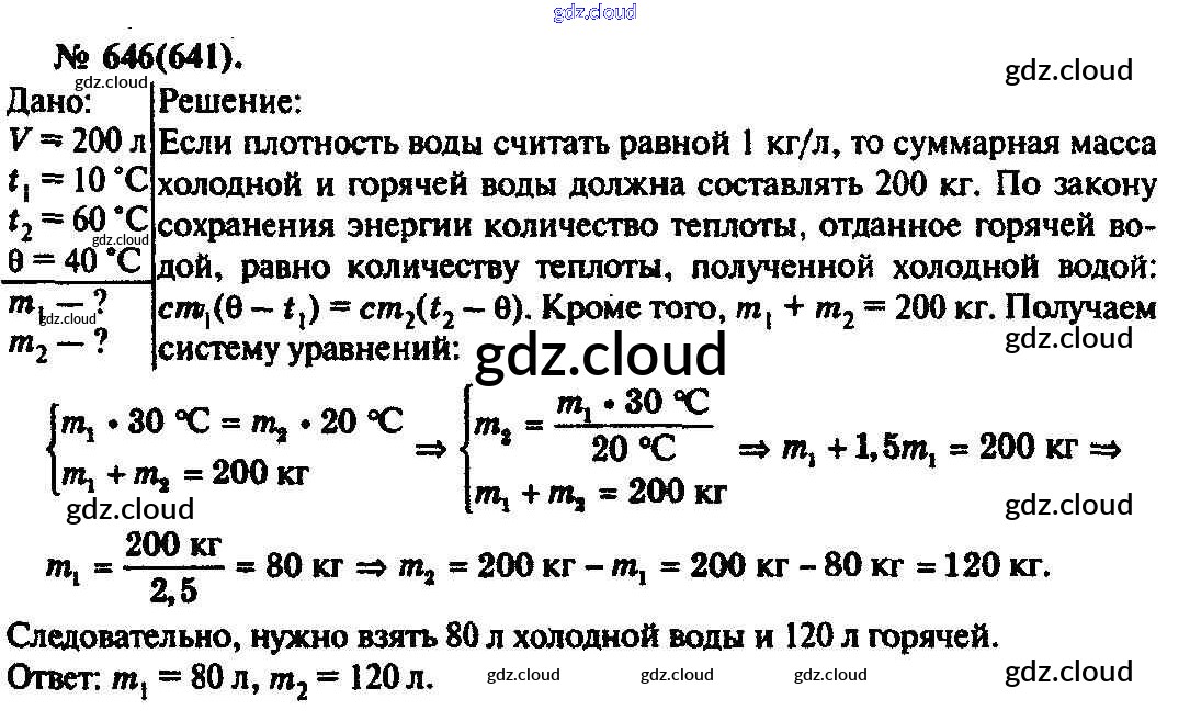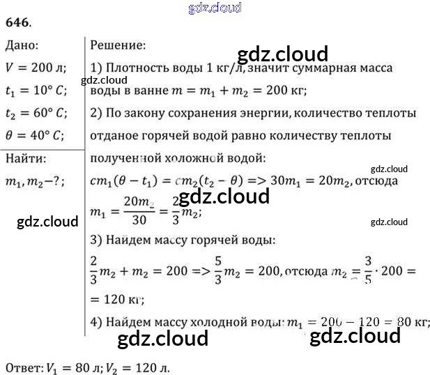 Ответ на задание 646 Задачник Физика за 10, 11 (десятый, одиннадцатый) класс Рымкевич УМК 2013