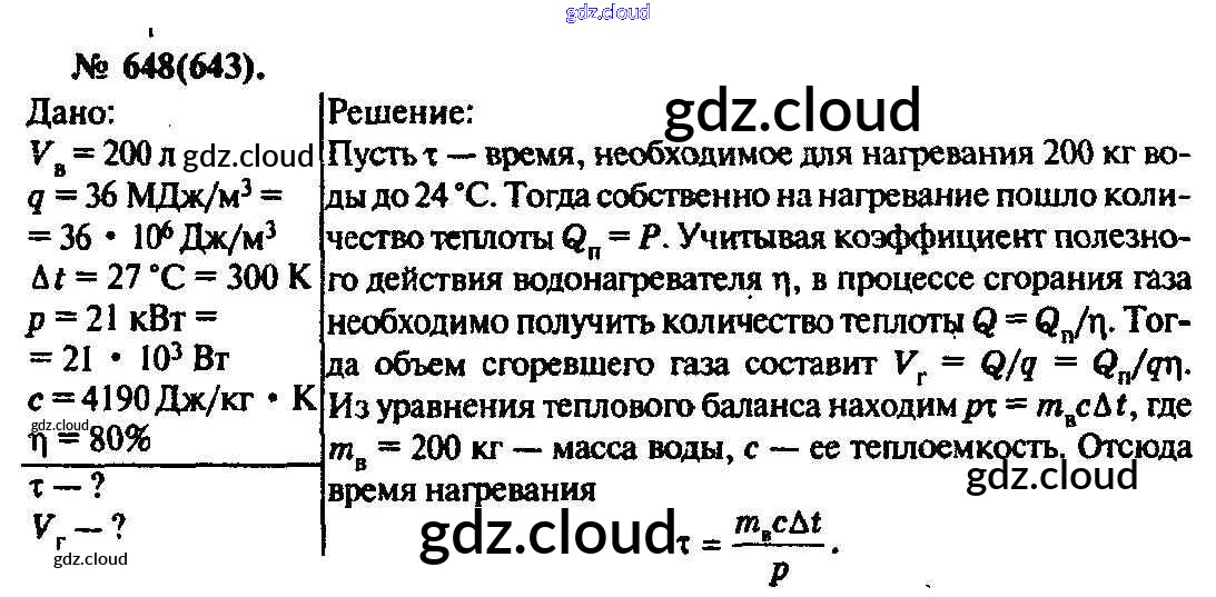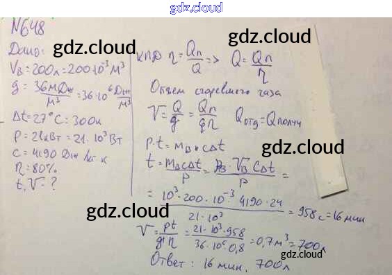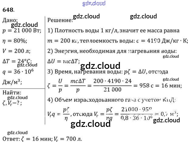 Ответ на задание 648 Задачник Физика за 10, 11 (десятый, одиннадцатый) класс Рымкевич УМК 2013