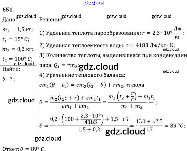 Ответ на задание 651 Задачник Физика за 10, 11 (десятый, одиннадцатый) класс Рымкевич УМК 2013