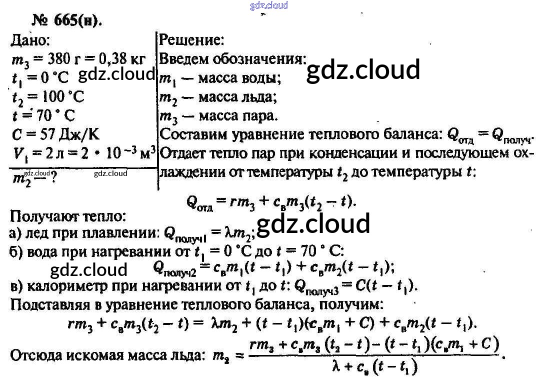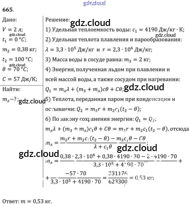 Ответ на задание 665 Задачник Физика за 10, 11 (десятый, одиннадцатый) класс Рымкевич УМК 2013