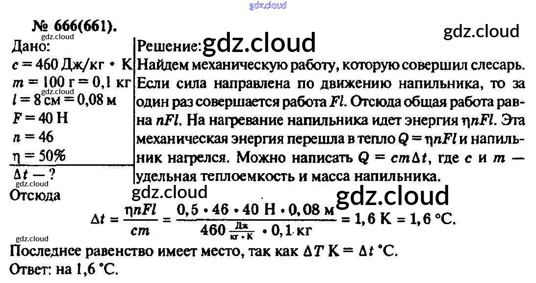 Ответ на задание 666 Задачник Физика за 10, 11 (десятый, одиннадцатый) класс Рымкевич УМК 2013
