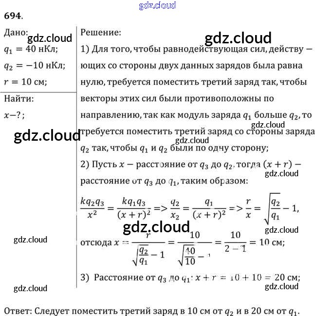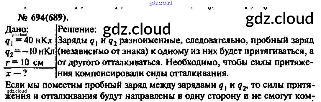 Ответ на задание 694 Задачник Физика за 10, 11 (десятый, одиннадцатый) класс Рымкевич УМК 2013
