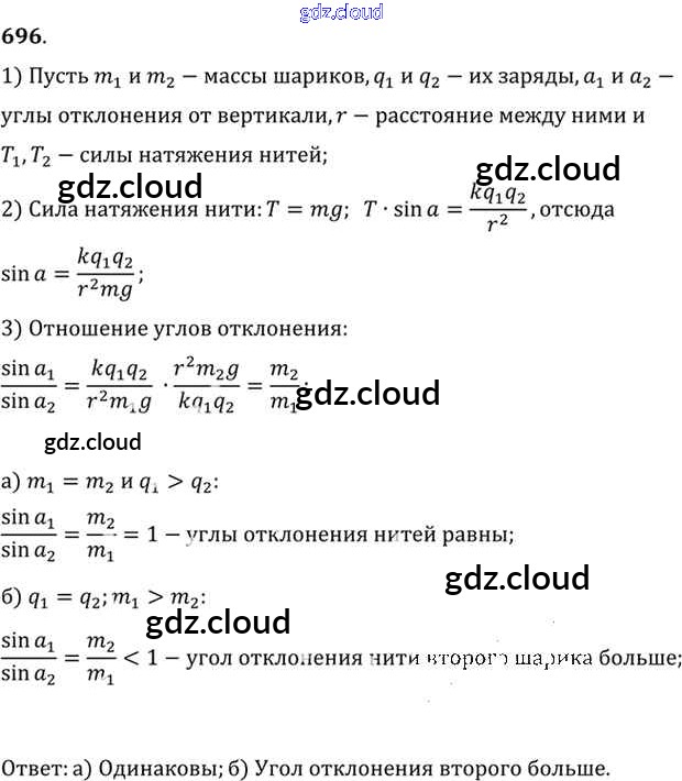 Ответ на задание 696 Задачник Физика за 10, 11 (десятый, одиннадцатый) класс Рымкевич УМК 2013