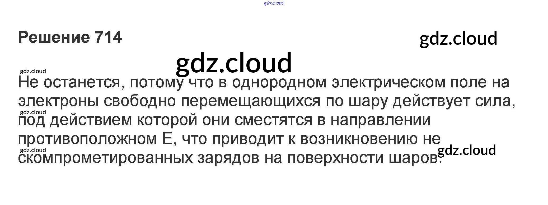 Ответ на задание 714 Задачник Физика за 10, 11 (десятый, одиннадцатый) класс Рымкевич УМК 2013