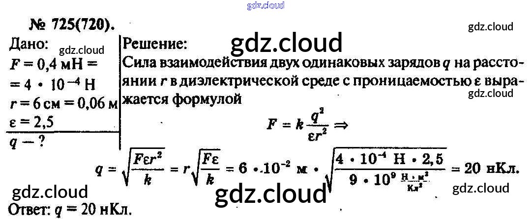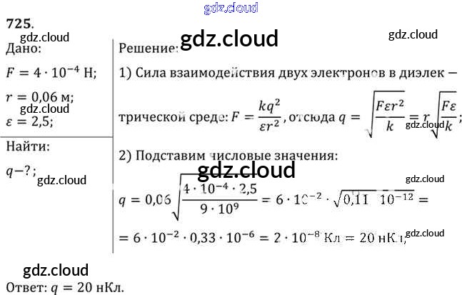 Ответ на задание 725 Задачник Физика за 10, 11 (десятый, одиннадцатый) класс Рымкевич УМК 2013