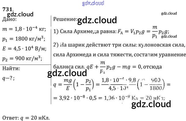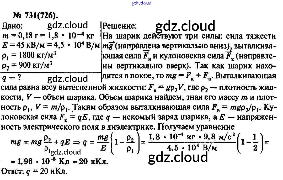 Ответ на задание 731 Задачник Физика за 10, 11 (десятый, одиннадцатый) класс Рымкевич УМК 2013