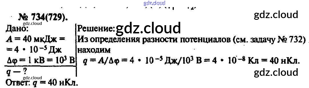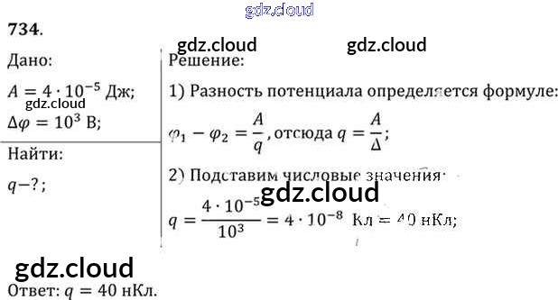 Ответ на задание 734 Задачник Физика за 10, 11 (десятый, одиннадцатый) класс Рымкевич УМК 2013