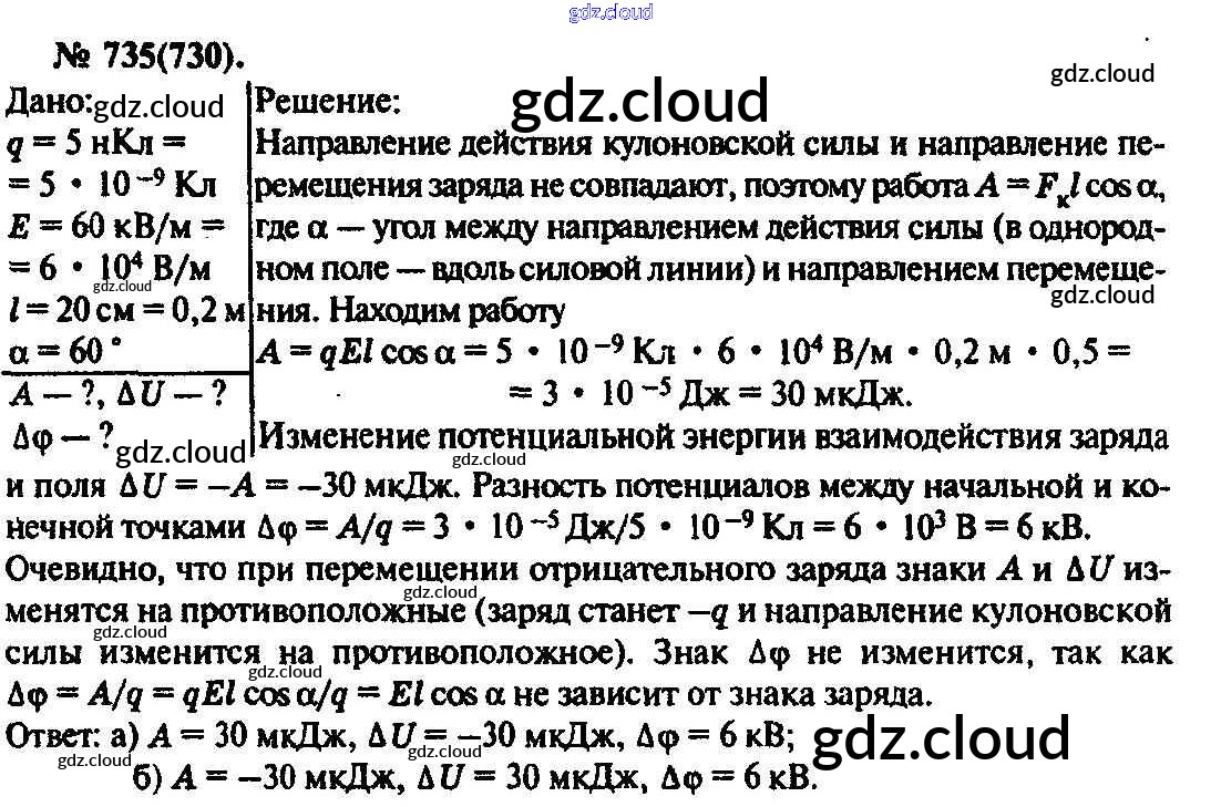 Ответ на задание 735 Задачник Физика за 10, 11 (десятый, одиннадцатый) класс Рымкевич УМК 2013