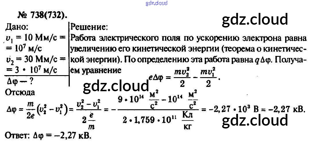 Ответ на задание 738 Задачник Физика за 10, 11 (десятый, одиннадцатый) класс Рымкевич УМК 2013